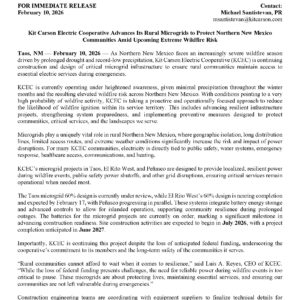Read more >Januar Kit Carson Electric Cooperative Solar & Hydrogen Project in Questa Continues to Move Forward in 2026 Questa, N.M. January 7, 2026 — Kit Carson Electric Cooperative (KCEC) today reaffirmed that the planned Questa Hydrogen and Solar Facility remains on track, following major planning, safety, engineering, and enviro...